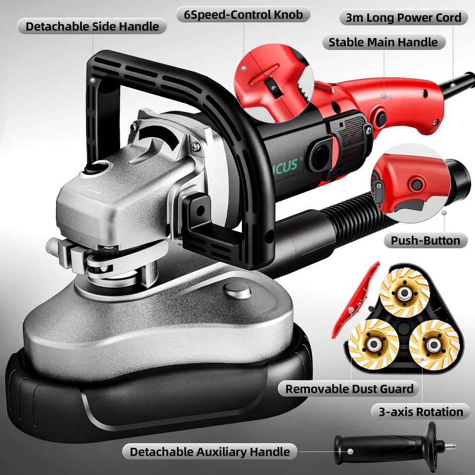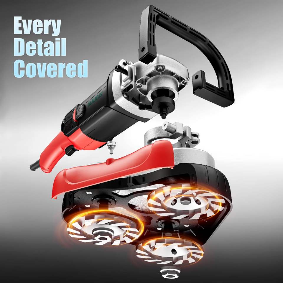 Meuleuse électrique à trois axes de 4 pouces pour surfaces en béton, pour le ponçage des sols, des murs et des plafonds