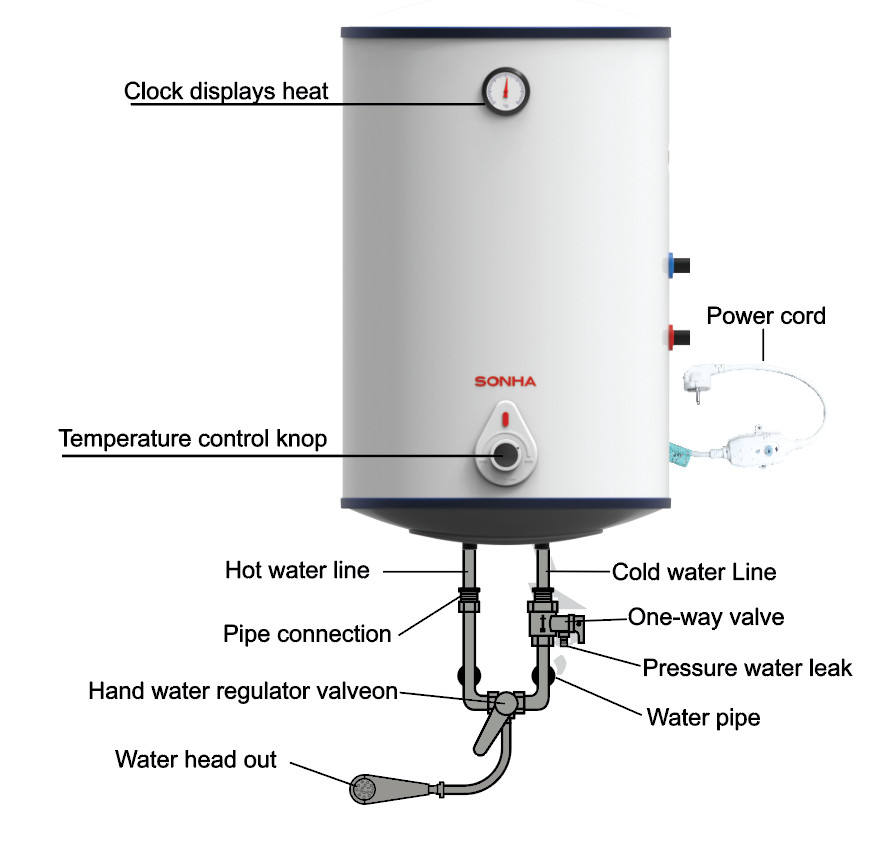 Chauffe-eau électrique à stockage 50L 220V avec efficacité énergétique 2500W/1500W/1200W pour hôtel de voiture domestique fabriqué au Vietnam