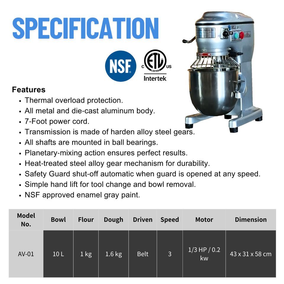 Mélangeur à pâte à pizza planétaire électrique Atlas Star 10 litres, bol mélangeur en acier inoxydable, crochet à pâte, fonction d'arrêt d'urgence, sécurité
