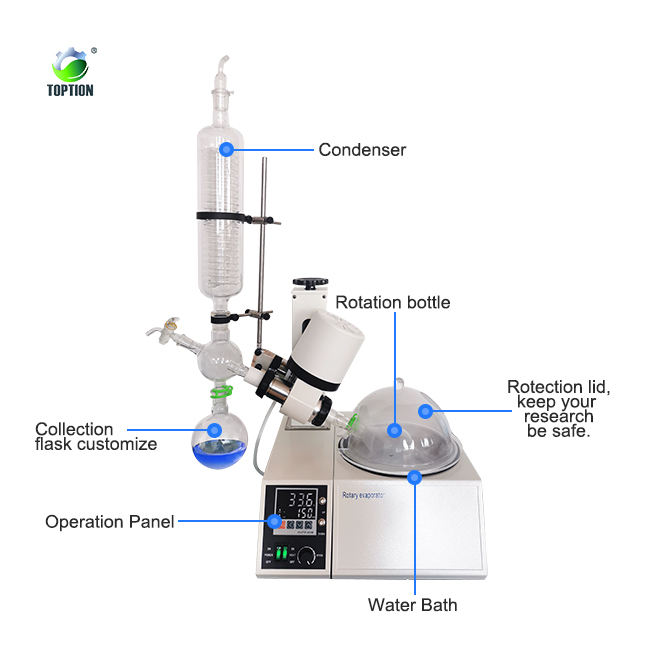 Évaporateur rotatif électrique automatique en verre borosilicaté 2L-5L avec moteur pour laboratoires de science des matériaux