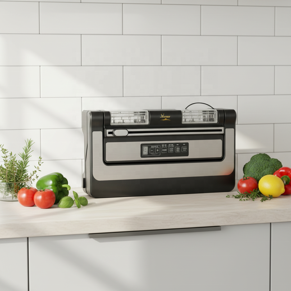 Machine de mise sous vide électrique automatique, prête pour les camping-cars, design compact, classe d'efficacité énergétique, corps en plastique, scellage multifonctionnel