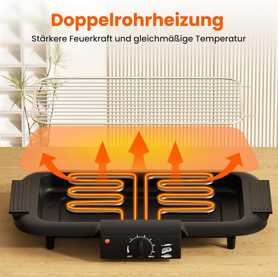 Barbecue électrique avec contrôle de la température et surface antiadhésive en PTFE, chauffage puissant, durable, haute qualité pour usage domestique