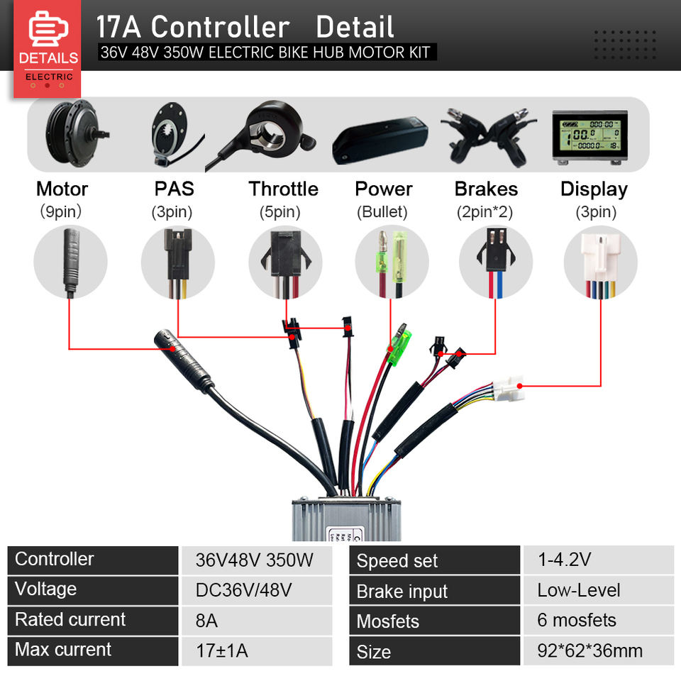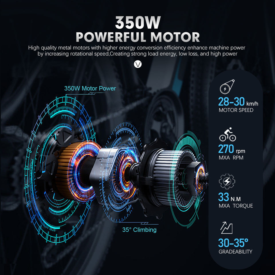 Kit de conversion de vélo électrique 36V 48V 350W, moteur de moyeu arrière sans balais à engrenages rotatifs pour vélo électrique, compatible avec frein à disque V/Disc