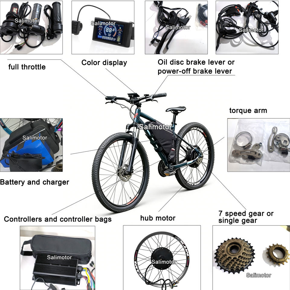 Kit de conversion de vélo électrique 5000W 72V 60V 52V Kit complet 48V Kit de conversion de vélo électrique Moteur roue 3000W 2000W 1000W Moteur de vélo électrique