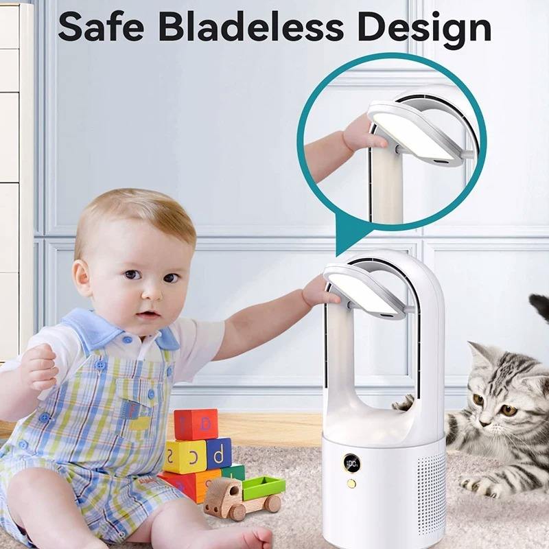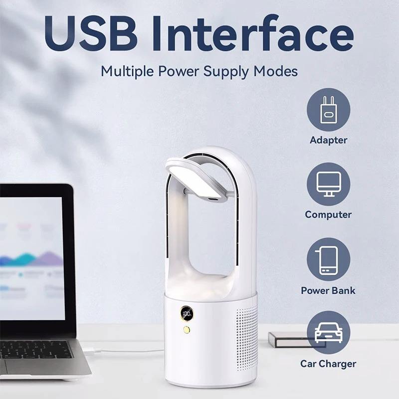 Ventilateur de table électrique sans pales, rechargeable par USB, mini ventilateur de refroidissement sans fil, ultra silencieux, avec lumière LED nocturne, pour la maison et le bureau