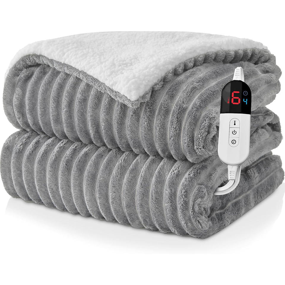 Couverture Électrique Pleine Grandeur Doux Côtelé Flanelle à Sherpa Couverture Chauffante Réversible avec 10 Réglages de Chaleur