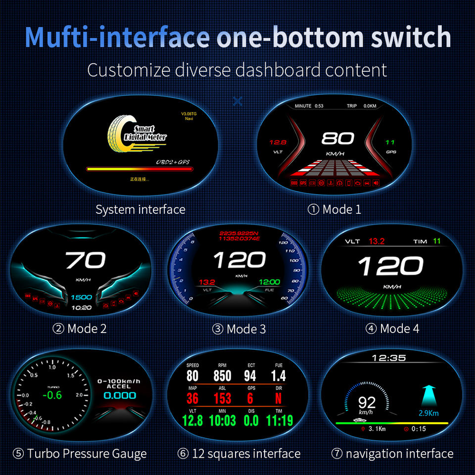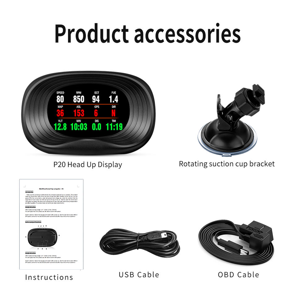 Afficheur tête haute HUD P20 pour voiture électrique, dernière version 2023, compatible OBD2 et GPS, tachymètre