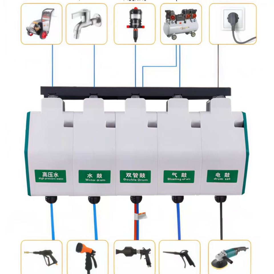 Enrouleur de tuyau rétractable combiné pour lavage de voiture électrique, pour lavage haute pression, mousse, nettoyage intérieur et roues - Nouveau