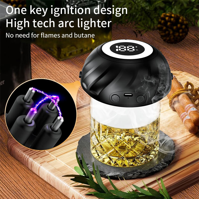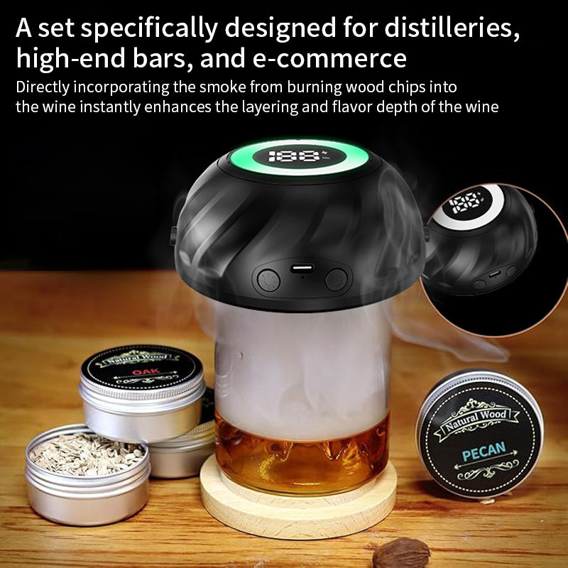 Electric Cocktail Whiskey Smoker Kit Rechargeable Whisky Cocktail Smoker Set with 6 Wood Chips in Gift Box for Men Dad