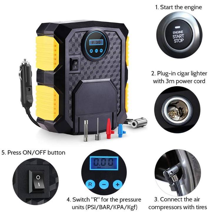 Compresseur d'air électrique DC 12 V pour voiture Pompe à 150 Psi et gonfleur de pneu de voiture