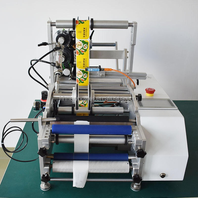 Machine d'étiquetage semi-automatique de bureau électrique pour bouteilles, canettes et bocaux ronds avec impression d'étiquettes en papier couleur