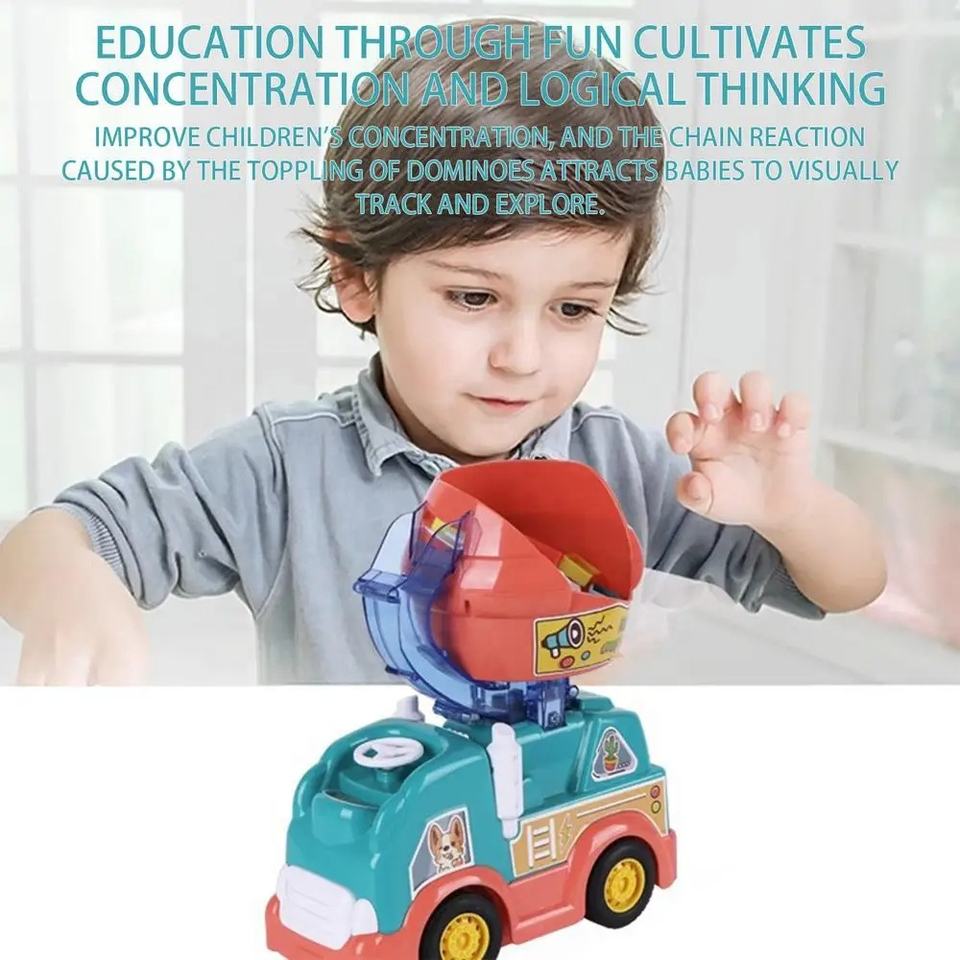 Design: domino blocks game:Electric car will lay dominoes from the rear of the car while driving