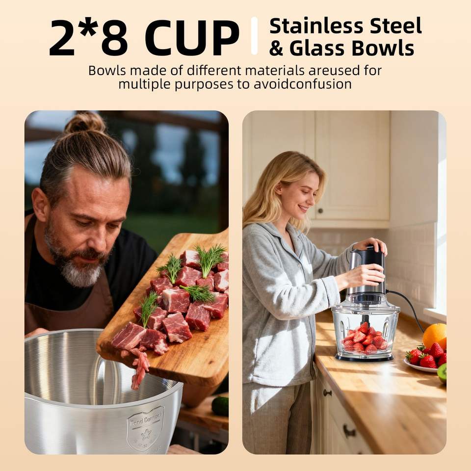 Robot culinaire électrique à double bol, hachoir à viande et coupe-légumes, hachoirs et trancheuses à viande