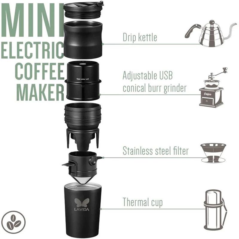 Filtre électrique en céramique, tasse en acier inoxydable avec chargeur USB, cafetière électrique Portable, livraison directe, moulin à grains