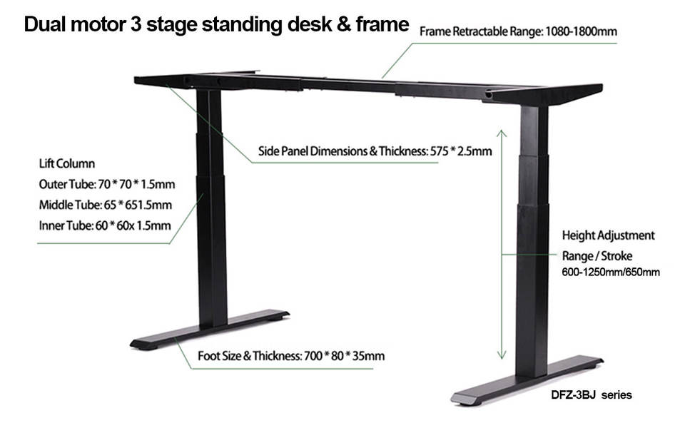 Nom du produit:Électrique Hauteur Réglable Bureau Debout Double Moteur Sit Stand Bureau