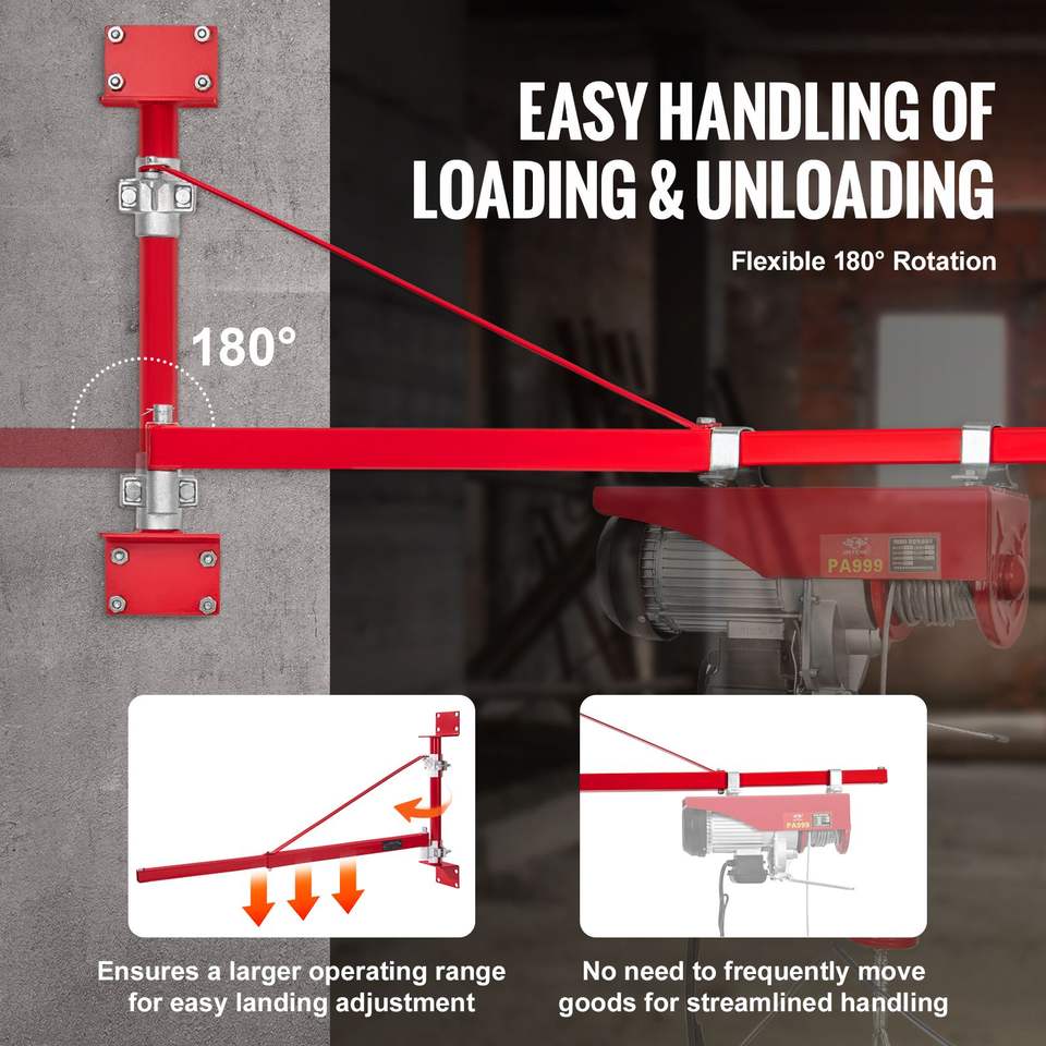 Support de treuil électrique avec bras articulé, capacité de charge maximale 1320 lb, cadre en acier, bras pivotant à 180 degrés, support de treuil électrique sur poteau