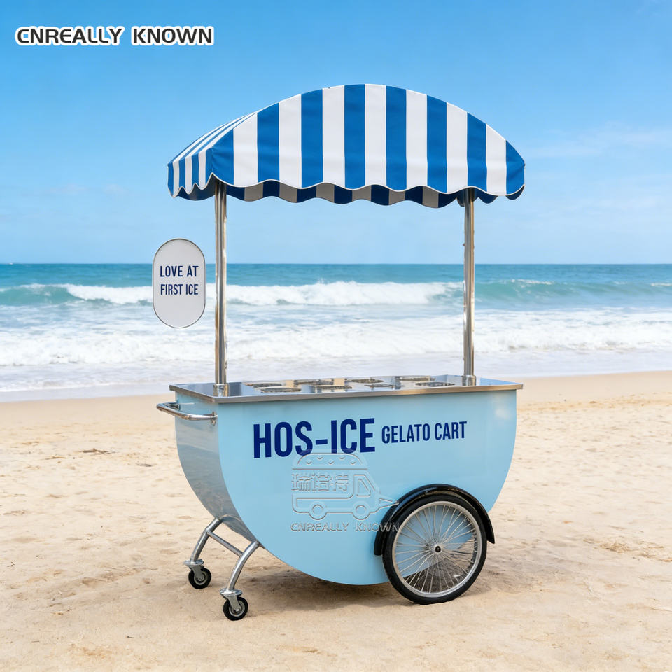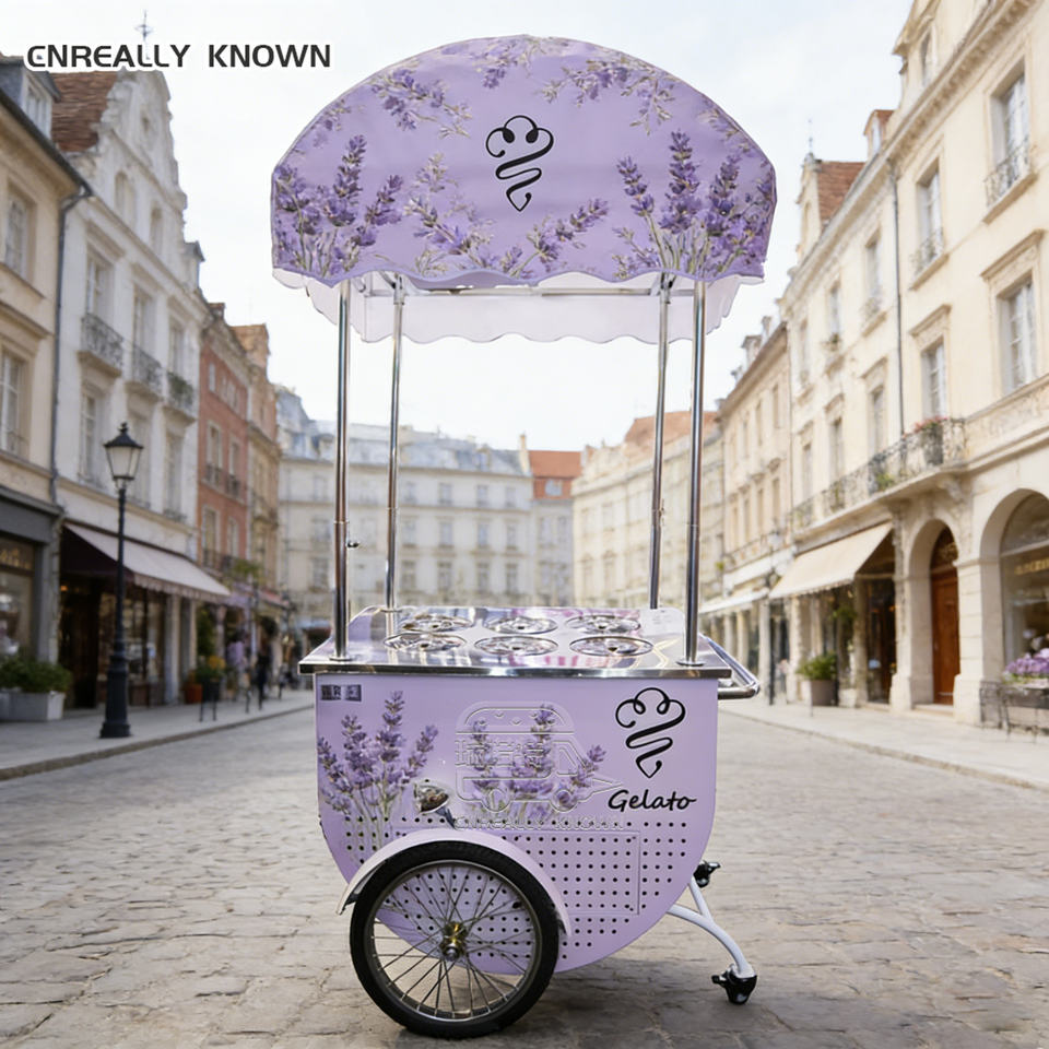 Chariot de présentation mobile personnalisé pour crème glacée électrique, idéal pour les entrepreneurs de restauration de rue, les parcs, les plages et les festivals