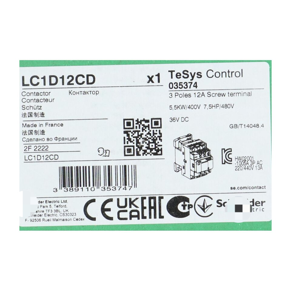 Contacteur électrique LC1D12CD TeSys D Nouveau NFP scellé