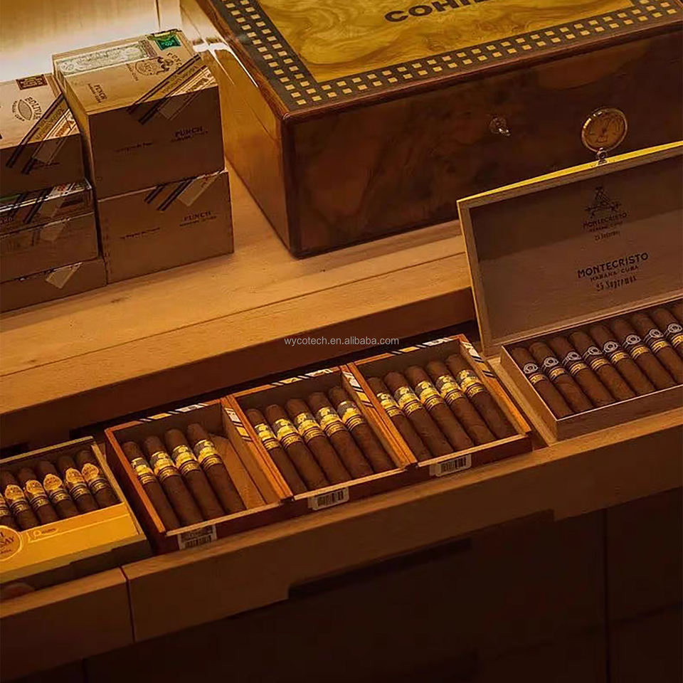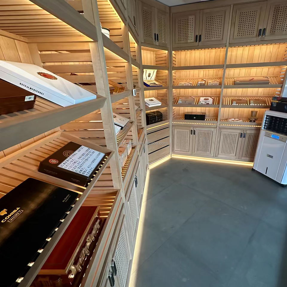 Vitrine à cigares électrique à LED en bois de cèdre espagnol avec serrure intelligente, température et humidité réglables, personnalisable