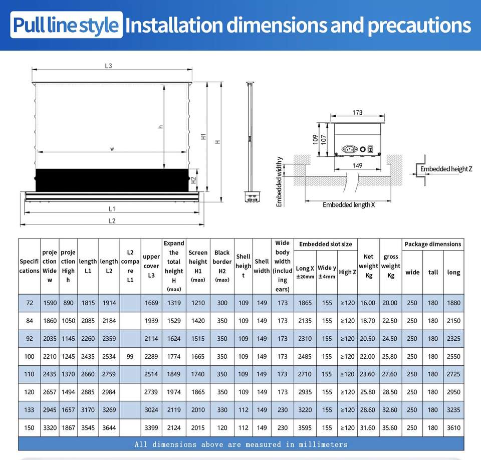 72 pouces -150 pouces