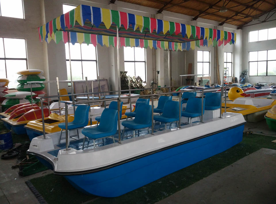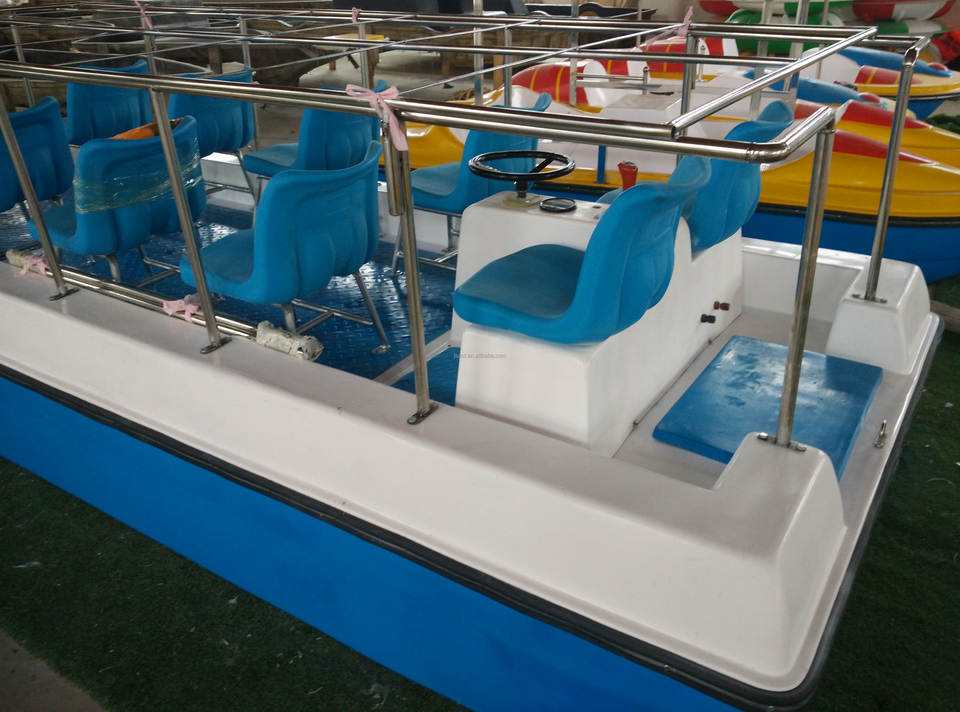 Moteur électrique bateau bus voiture 10 passagers zoo parc rivière chargement transport navire fibre de verre cabine auvent siège