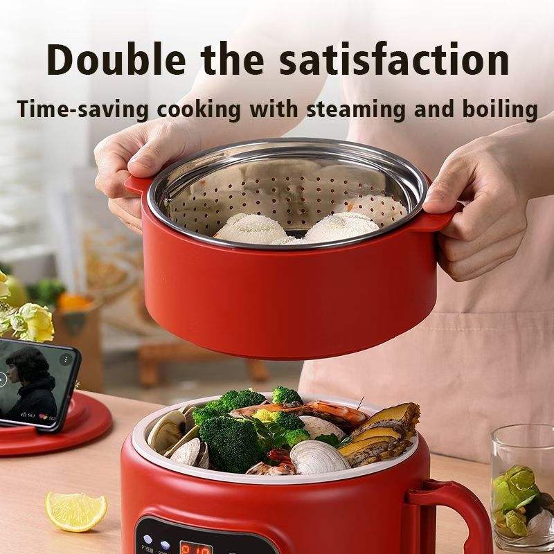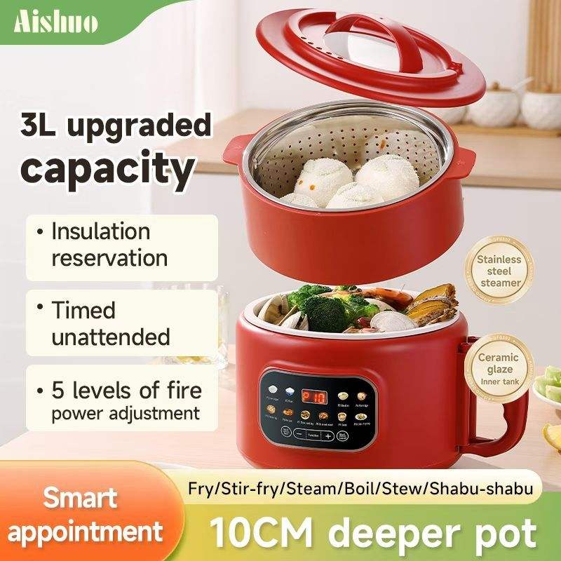 Casserole électrique multifonction 3L, contrôle numérique, fonctionnement à une touche, cuiseur vapeur, cuiseur à riz avec minuterie pour une utilisation domestique en cuisine
