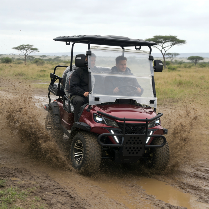 Moto tout-terrain électrique dérivée d'un chariot 4 places, recharge intelligente, faible bruit, régulateur de vitesse