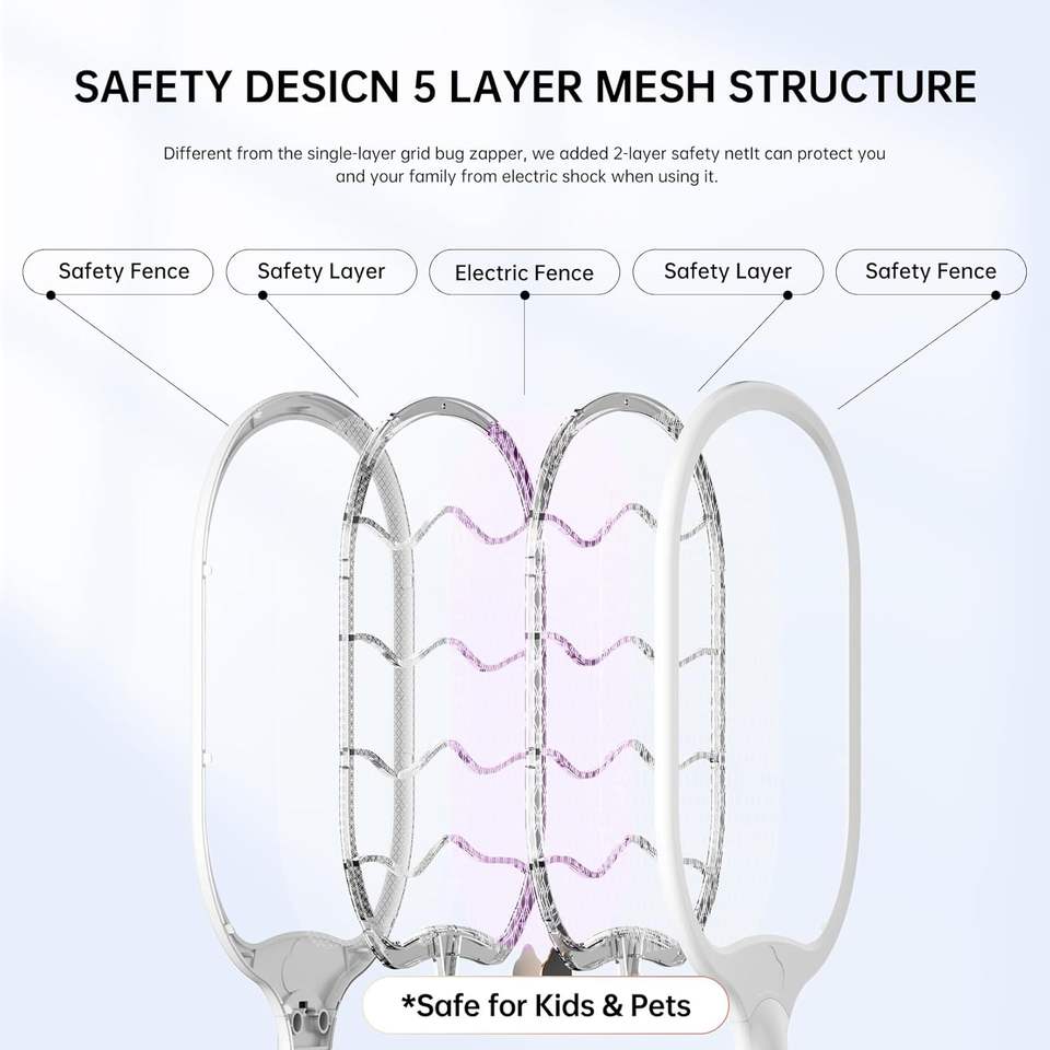 Raquette électrique portable anti-moustiques et anti-mouches avec une portée allant jusqu'à 20 m pour un usage domestique