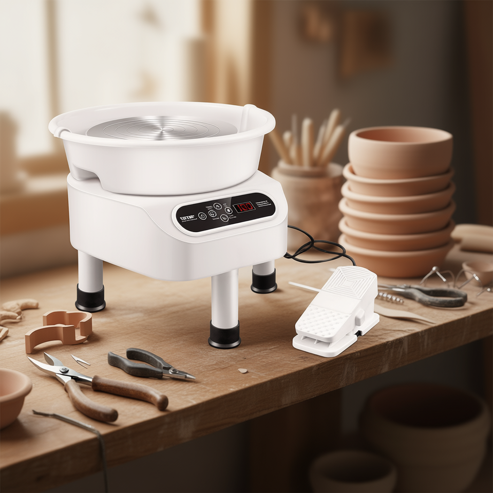 Tourne-poterie électrique 11 pouces 450W avec écran tactile LCD, pour artisanat et céramique DIY, avec 3 pieds de support