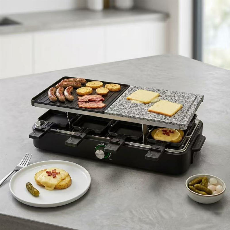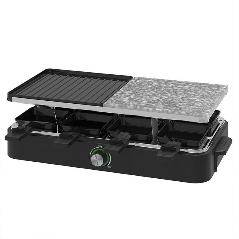 Grill électrique à raclette pour 8 personnes, appareil à faire fondre le fromage avec plaque en pierre, 1400W, barbecue d'intérieur sans fumée, température réglable