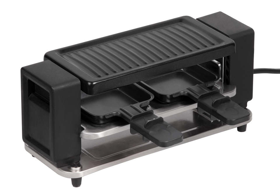Gril à raclette électrique pour 2 personnes avec plaque antiadhésive ou planche mécanique laminée à froid en pierre ou ardoise