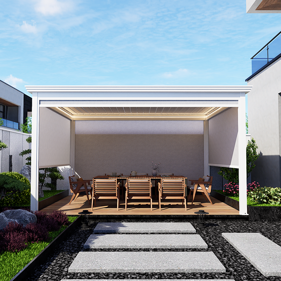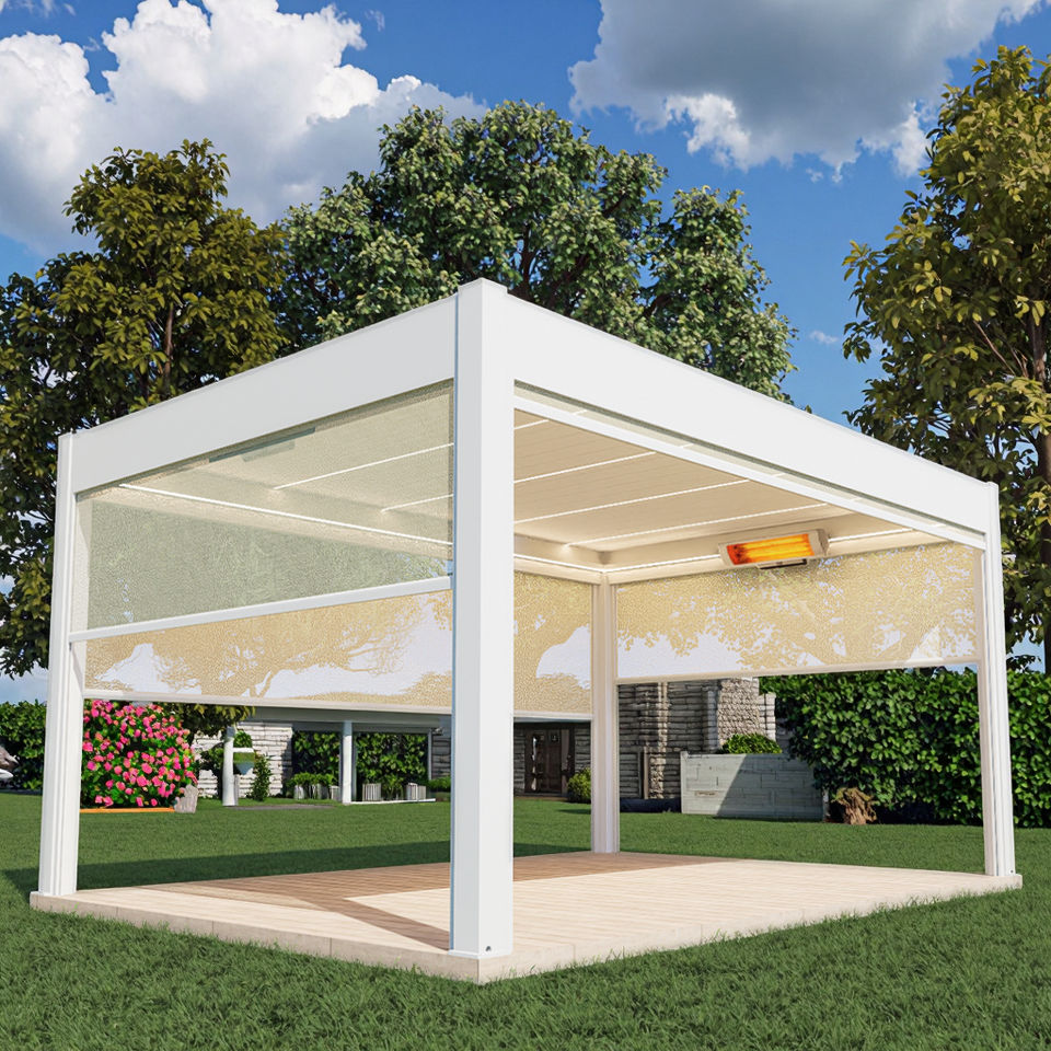 Pergola électrique en aluminium bioclimatique télécommandée 2x3 3x3m 3x4 3x5 5x4 3 m x 6m avec côtés persiennes blanches
