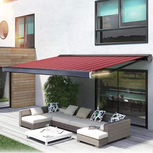 Electric Retractable Cassette Motorized Awning LED Lighting 3m X 6m PVC Sail Automatic Open Outdoor Balcony Use