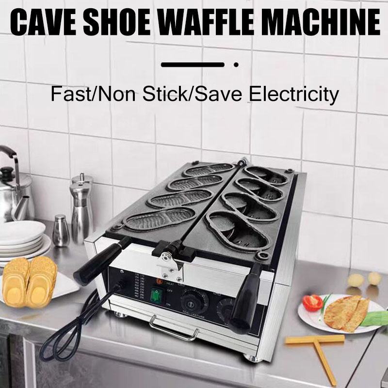 Machine de fabrication de gaufres électriques en forme de chaussures Revêtement antiadhésif Machine à pain en forme de chaussure 4 pièces Baker Commercial
