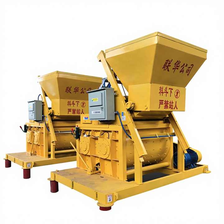 Malaxeur à béton électrique automatique à double arbre avec pompe et moteur, productivité de 25 m/h pour la construction