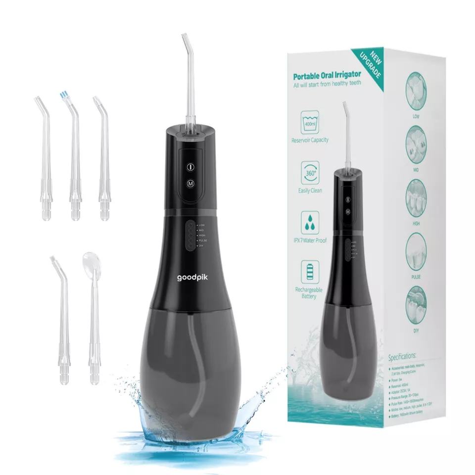 Hydropulseur électrique IPX7 rechargeable sans fil, irrigateur buccal 400 ml pour le nettoyage des dents avec lumière UV