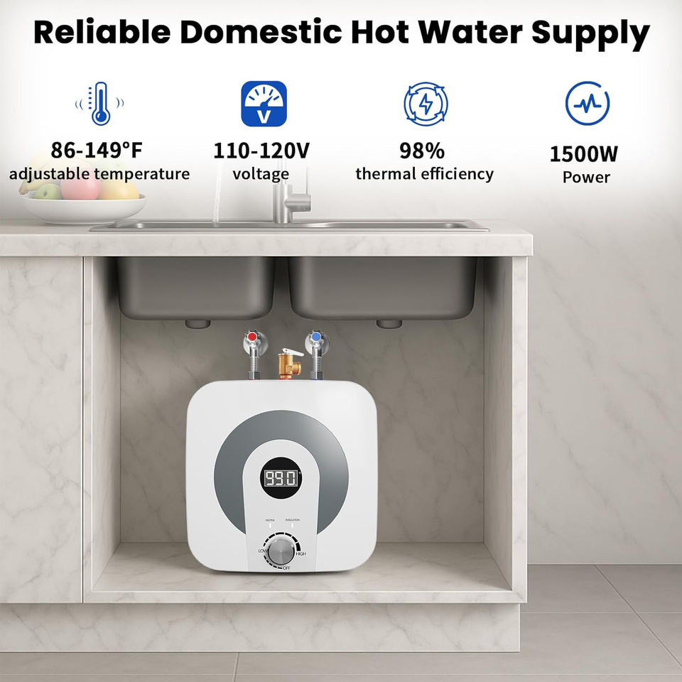 Chauffe-eau électrique, mini-réservoir sous l'évier, chauffe-eau instantané avec valve de dégagement de pression, affichage numérique