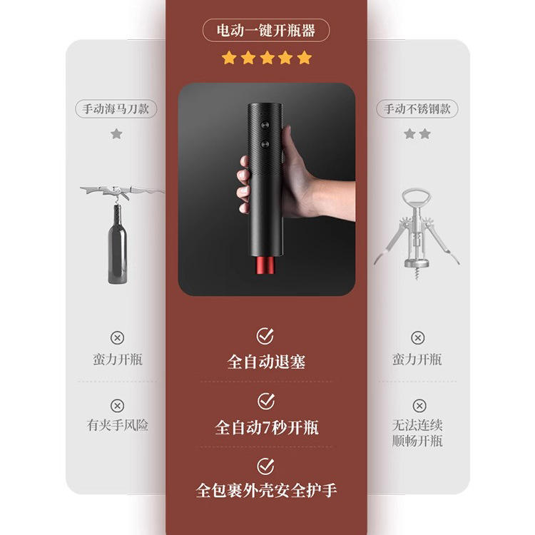Ouvre-bouteille électrique entièrement automatique en acier inoxydable, corps rond en ABS, chargement par type C, outil à vin portable pour usage domestique