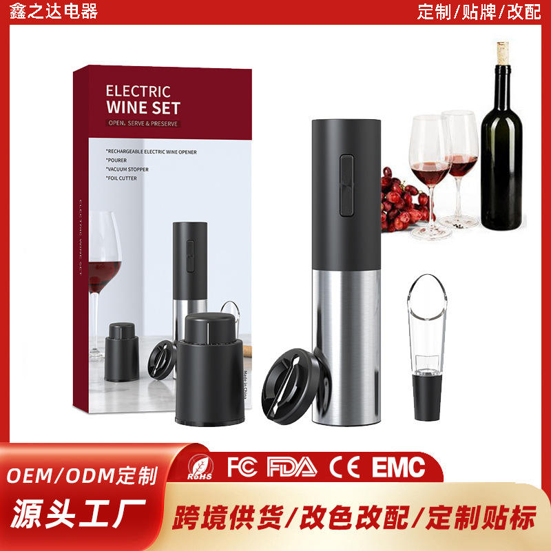 Ensemble ouvre-bouteille électrique en acier inoxydable rechargeable avec tire-bouchon automatique, verseur, bouchon à vide et coupe-capsule