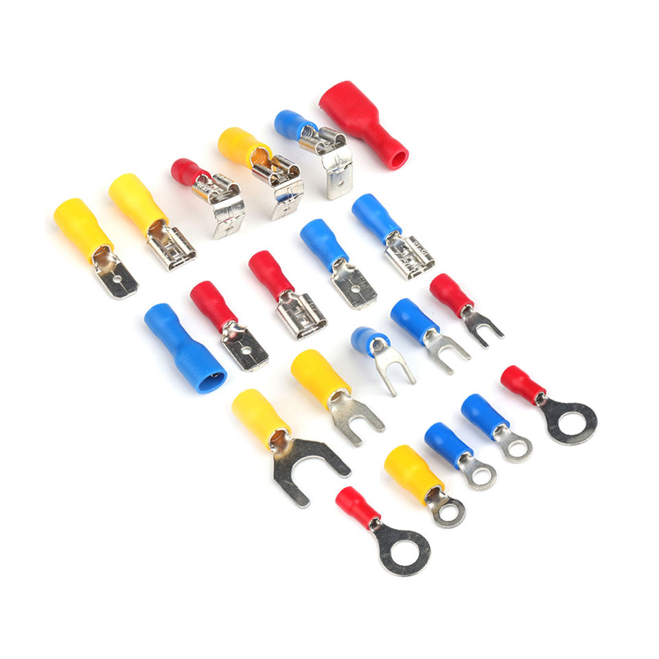 Connecteurs isolés à sertir pour câbles électriques automobiles, bornes mâles à anneau et à bout.