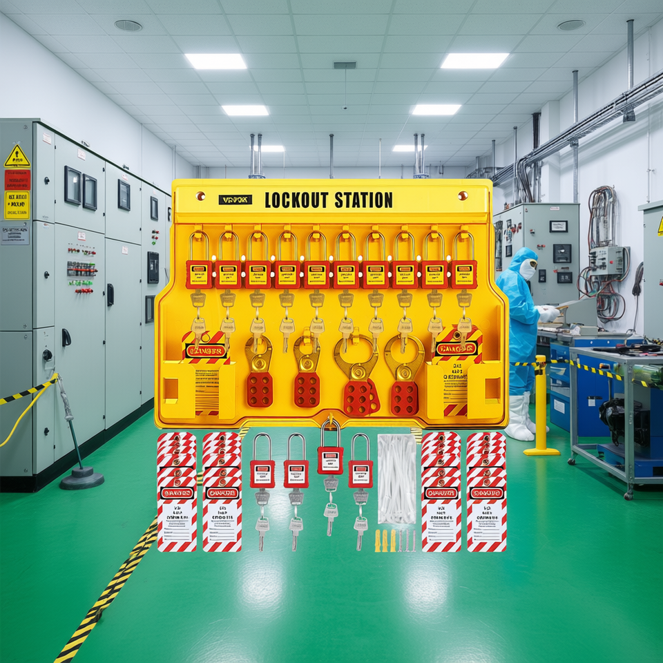 Kit d'équipement de sécurité électrique pour salle blanche 58 pièces : Verrous de blocage LOTO, étiquettes de verrouillage, attaches de sécurité, attaches zippées