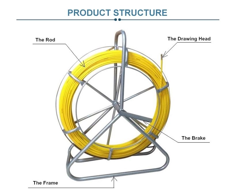 Tige de guidage électrique pour conduits, en fibre de verre, diamètre 10 mm, longueur 100 m, pour pose de câbles et utilisation en ingénierie