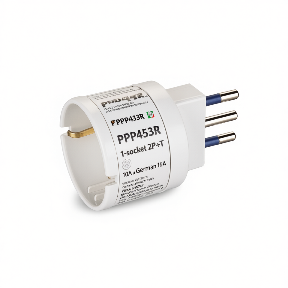 Adaptateur de prise électrique 1 prise 2P+T (10A italien et 16A allemand) Blanc PP0433R Autres connecteurs