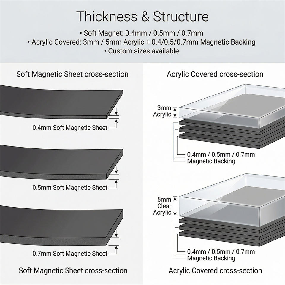 Type de matériau:Feuille magnétique souple / Recouverte d'acrylique (avec support magnétique)