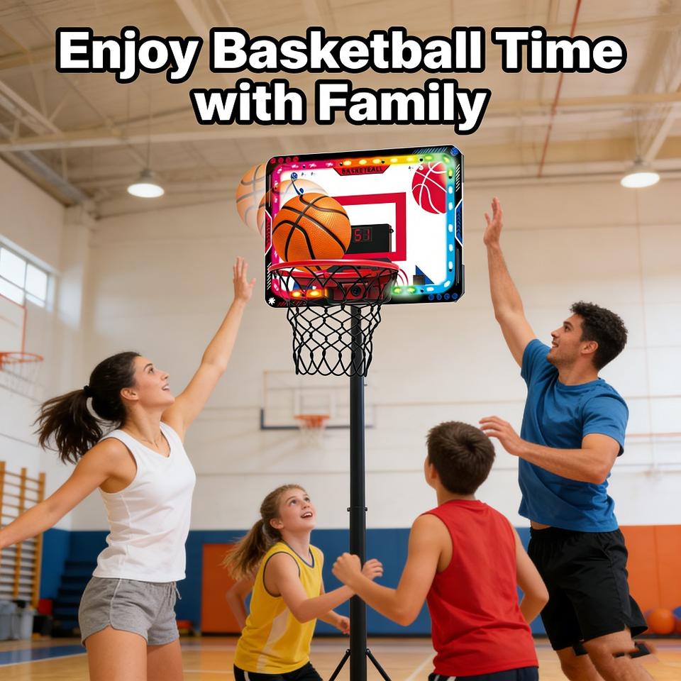 Panier de basket avec lumières LED, effets sonores et panier mobile