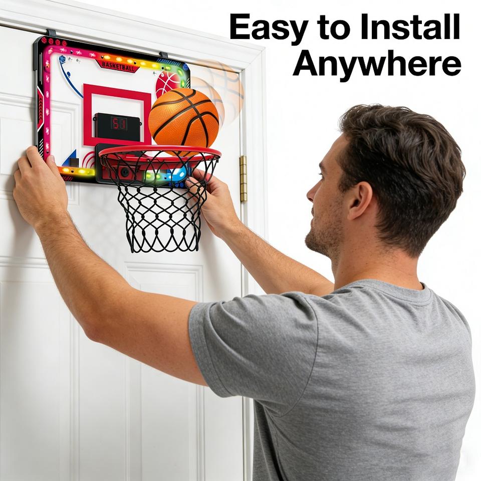 Panier de basket électronique avec lumières LED, effets sonores, télécommande, panier mobile, jouet de basket à suspendre à la porte pour enfants