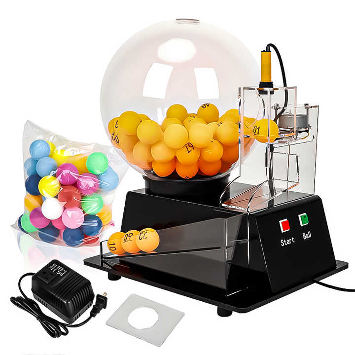 Machine à boules de bingo électronique, cage de bingo en acrylique automatique et ensemble de boules de loterie avec boules d'appel, jeu de bingo à jetons colorés