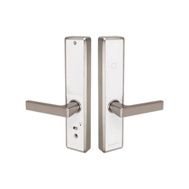 Poignée de porte électronique Dormakaba M5 BLE (broche 8mm, porte jusqu'à 90mm, espacement 72) 13.56 MHz, Blanc-Nickel
