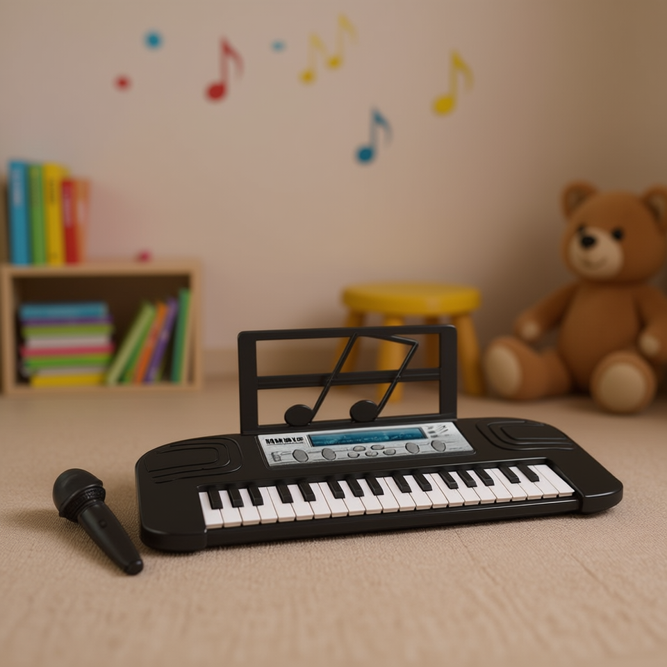 Clavier électronique 37 touches noir, fonctionnant sur piles, avec microphone, pour enfants, jouet musical éducatif