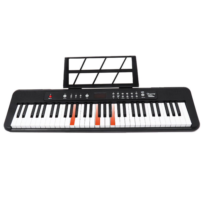 Clavier électronique 61 touches avec éclairage pour adultes et débutants, comprend un microphone et un support pour partitions
